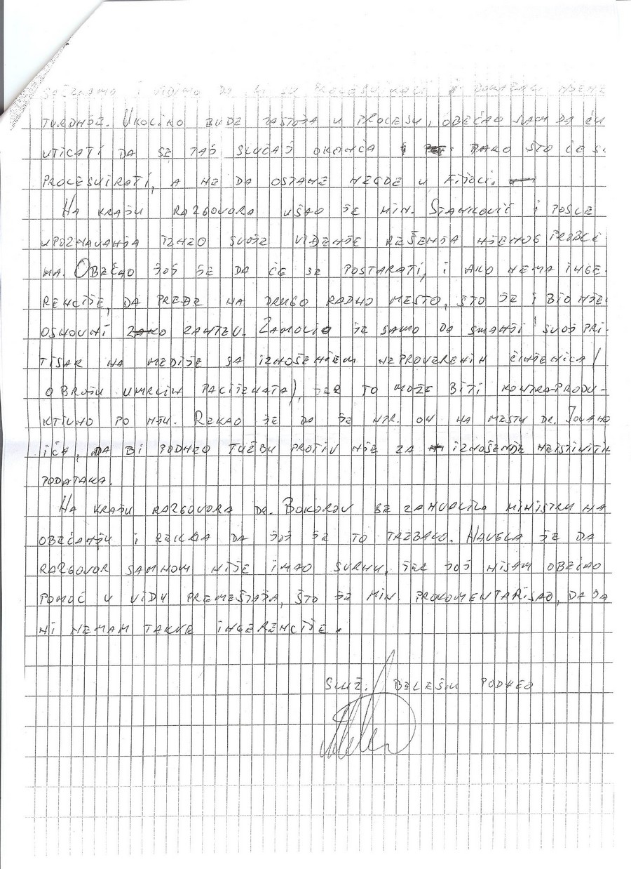 Izveštaj dr Bojane Bokorov sa sastanka održanog 17.avgusta 2011. u Ministarstvu zdravlja u kome navodi da joj je u razgovoru ministar zdravlja Zoran Stanković pretio tužbom zbog ukazivanja na korupciju kao i pismo predsedniku Borisu Tadiću u kome ga upozorava na ponašanje ministra zdravlja. Reagovanje ministra zdravlja, prisutnog advokata i predsednika udruženja pacijenata na adresi: http://www.021.rs/Novi-Sad/Vesti/Ministar-zdravlja-pretio-lekarki.html